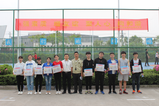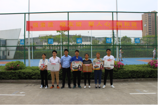 “合力投籃”比賽獲獎(jiǎng)人員與頒獎(jiǎng)?lì)I(lǐng)導(dǎo)留影