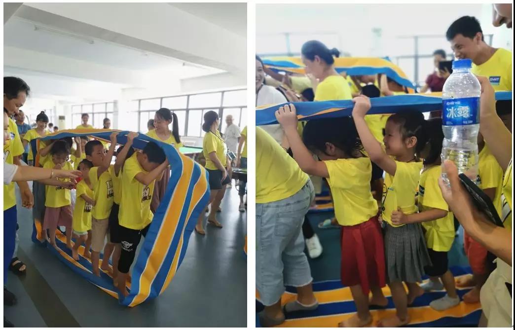 隨后,活動在一場歡快的“兔子舞”中拉開了序幕,本次活動設置了 “過河拆橋”、“無敵風火輪”、“投籃高手”等系列趣味小游戲。在活動中,家長和孩子們密切配合,整個現(xiàn)場處處洋溢著家長和孩子們的歡聲笑語,全員為孩子們加油喝彩,助威鼓勁,活動中最別具一格的游戲是“無敵風火輪”,由于擋住了前方視線,孩子要有基本的方向意識,游戲有一定的難度,在旁觀看的爸爸媽媽們即是激動又是緊張,在爸爸媽媽們的幫助和指導下孩子們順利完成游戲任務,最后家長們也積極興奮的PK挑戰(zhàn),體驗孩子們的樂趣、童真。