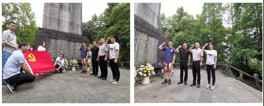 (黨員們紅十三軍烈士紀念碑前重溫入黨誓詞)