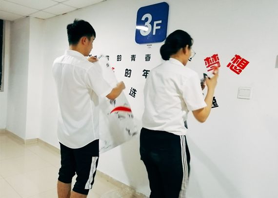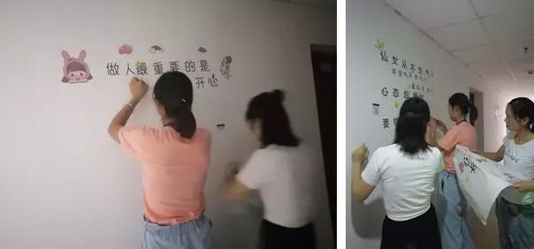 (經過四個小時的通力合作,宿舍的白墻已經換上美美的新裝啦)