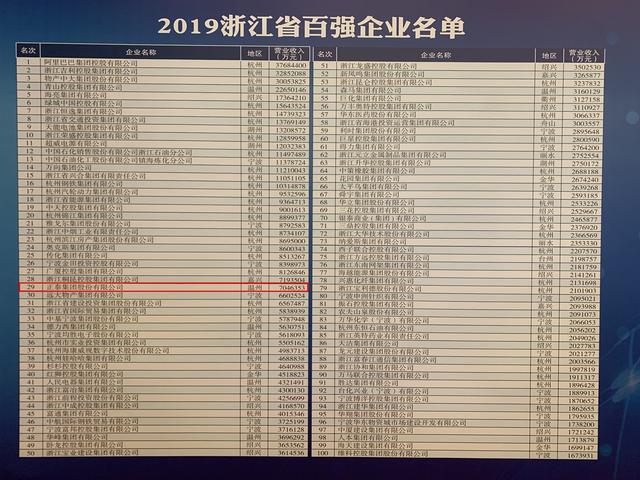據(jù)悉,“2019浙江省百強企業(yè)”榜單是在中國企業(yè)聯(lián)合會、中國企業(yè)家協(xié)會指導(dǎo)下,在各市縣企業(yè)聯(lián)合會、企業(yè)家協(xié)會、工業(yè)經(jīng)濟(jì)聯(lián)合會,省級各行業(yè)協(xié)會、各有關(guān)部門和廣大企業(yè)的大力支持下,按照企業(yè)自愿申報,有關(guān)部門審核把關(guān),以國際和國內(nèi)通行規(guī)則排序產(chǎn)生的。這也是自2003年以來連續(xù)第17次向社會公開發(fā)布年度浙江省百強企業(yè)榜單。